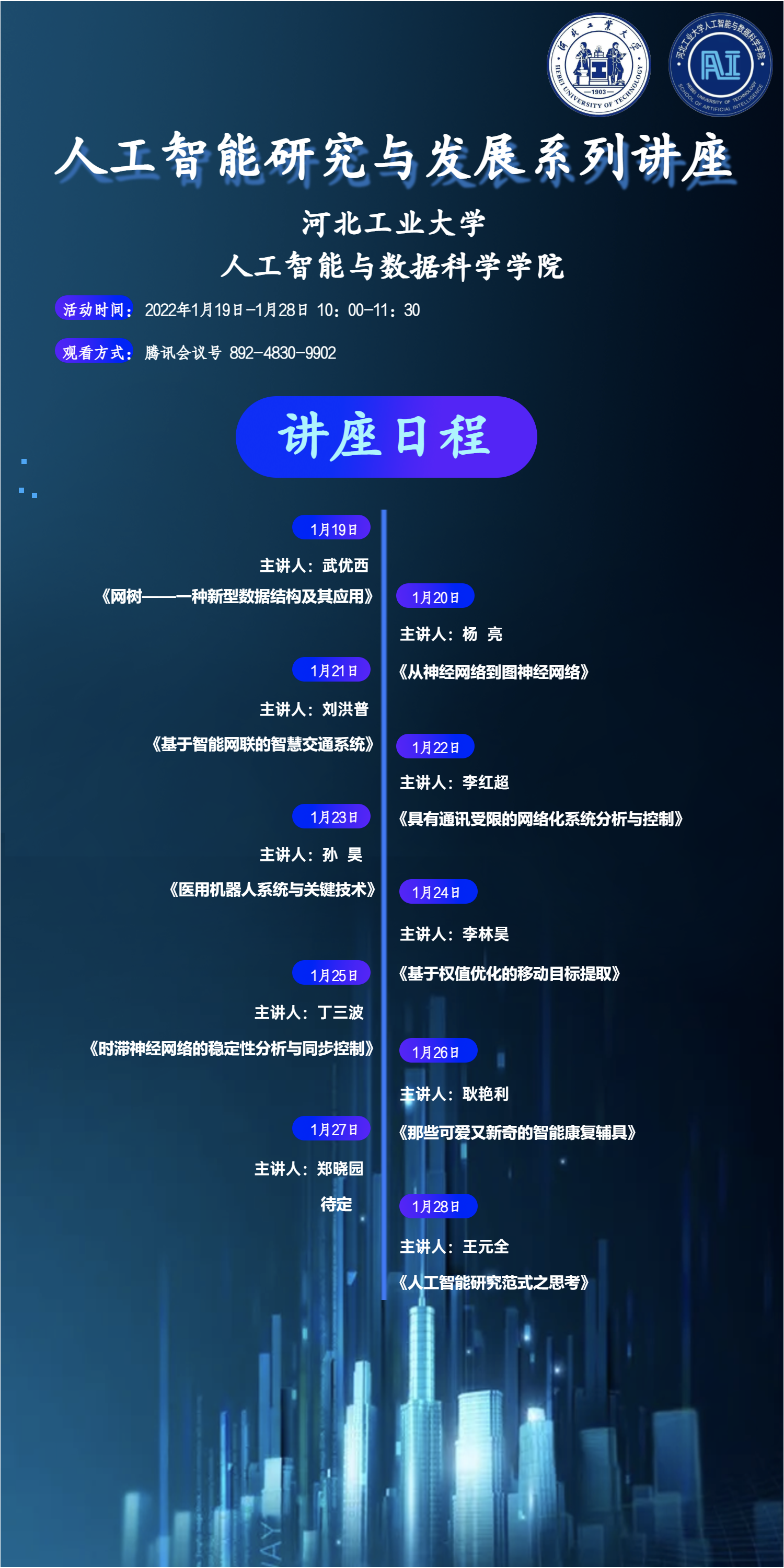 2022年寒假期间,色漫网 师生以做好自身本职工作支持“抗疫行动”。为了丰富留校研究生的色漫网 生活,扩大师生的色漫网 视野,色漫网 组织由多名“元光学者”组成的中青年骨干教师,为全校师生带来了“人工智能研究与发展系列讲座”。讲座内容包括智能康复、医疗机器人、智能交通、神经网络与复杂系统控制、新型大数据技术等多个人工智能前沿领域。欢迎广大师生参加。