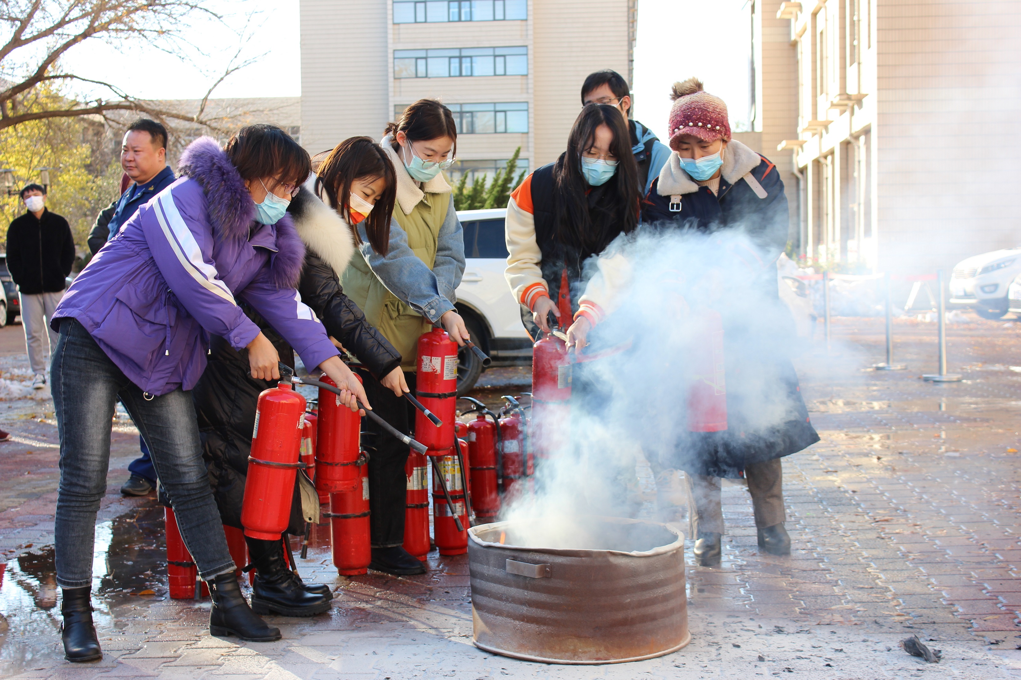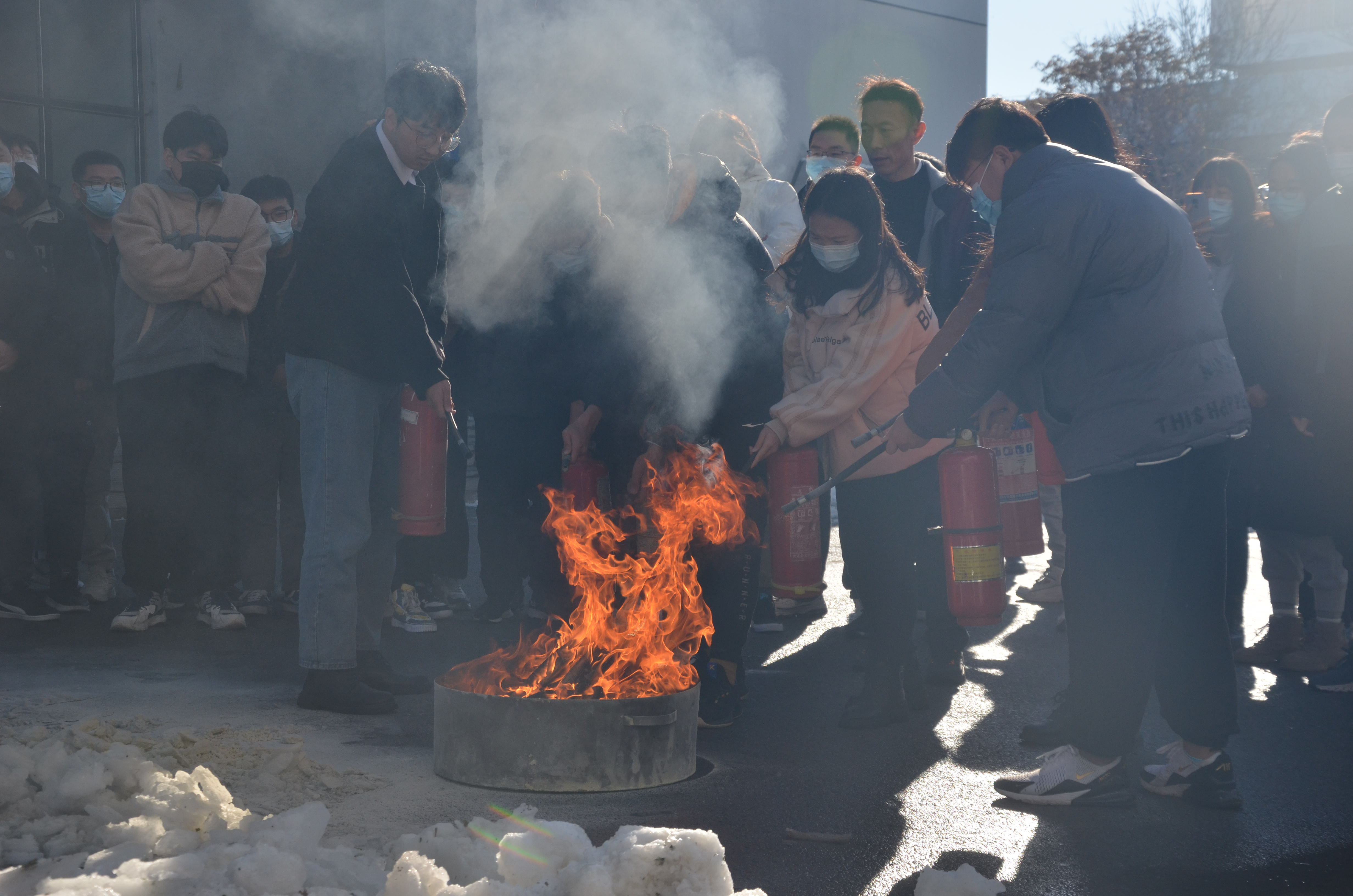 李麟浩老师向师生们讲解了灭火器的使用方法和操作规范,并组织师生亲身体验了灭火器灭火的操作,老师和同学基本掌握了灭火器的使用要领。
