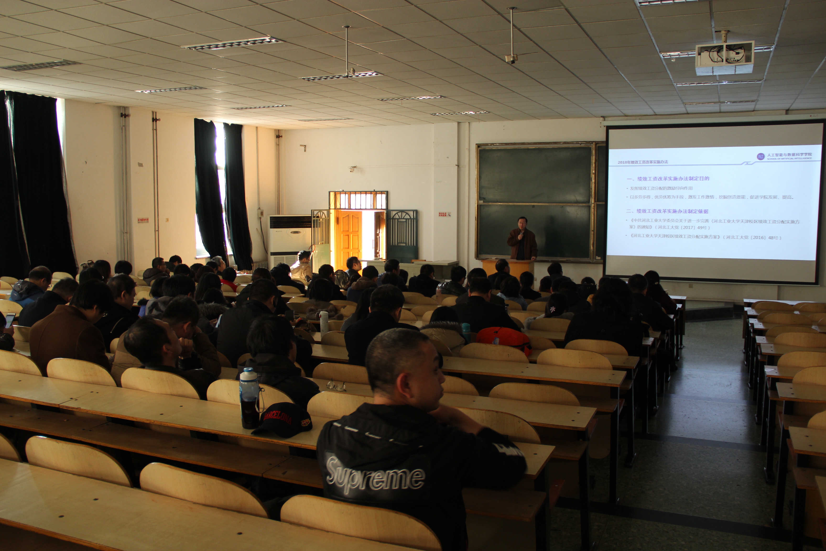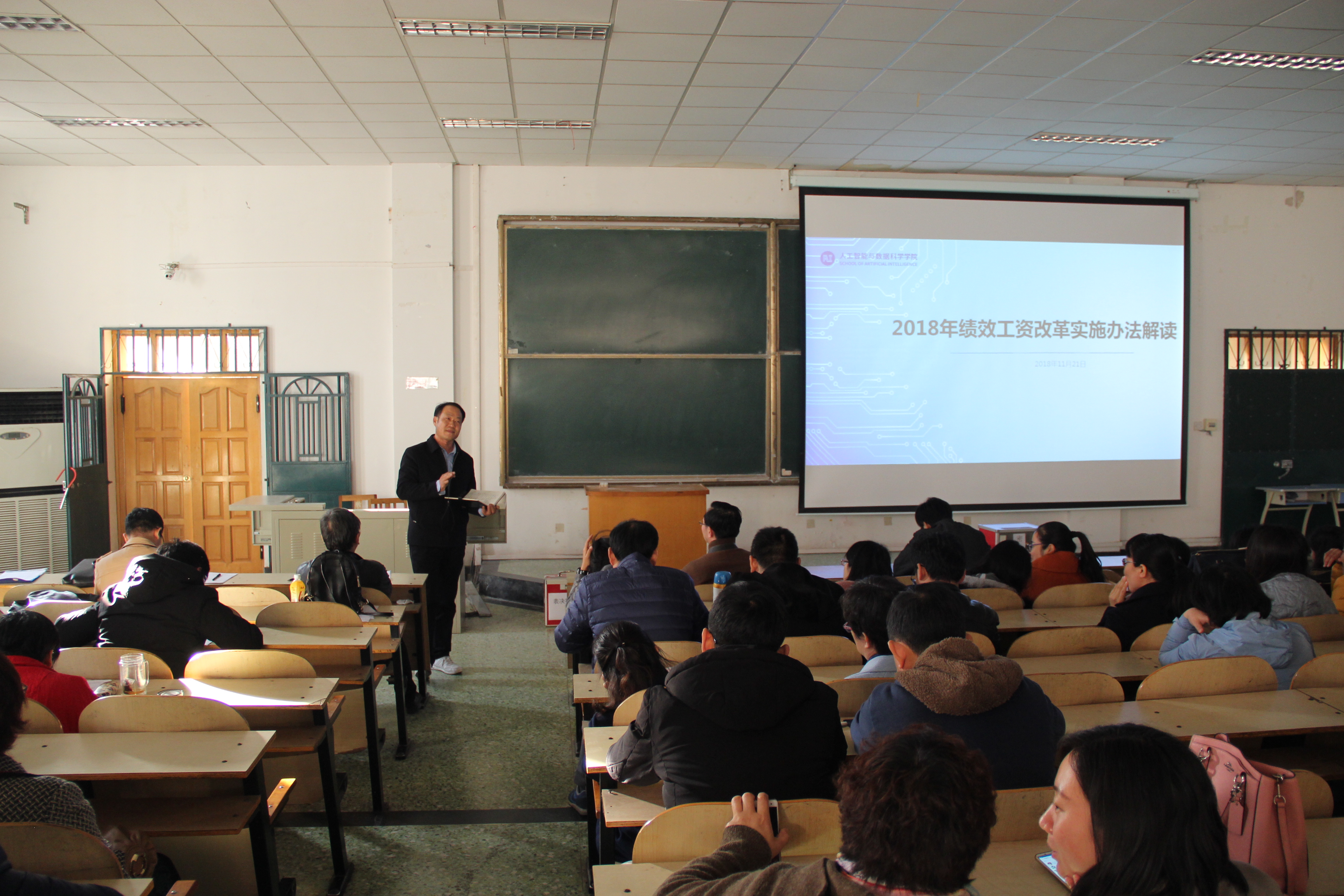 11月22日下午,色漫网 在7D102召开全体教职工大会,通过色漫网 2018年绩效工资改革实施方案。色漫网 领导及全体教职工参加大会。会议由副书记张慧川主持。