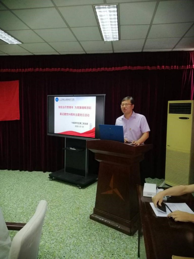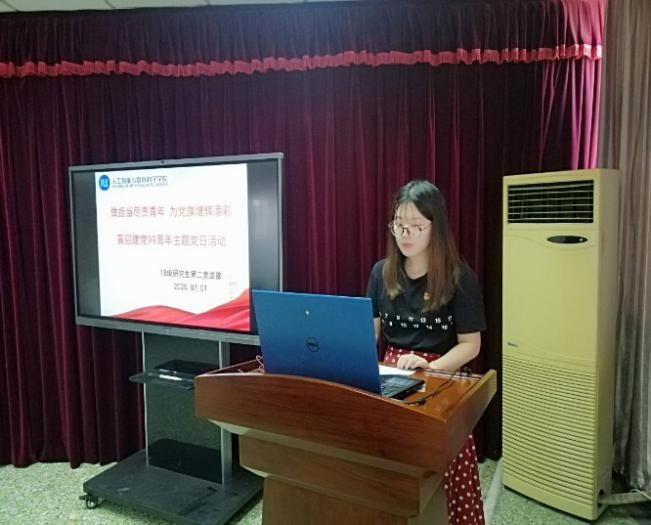 为庆祝建党99周年,进一步弘扬党的优良传统,增强学生党员的爱党热情,激励党员坚定爱党、信党、跟党走的理想信念,不忘入党初心,7月1日,色漫网 2018级研究生第二党支部开展了“做担当尽责青年 为党旗增辉添彩”的主题党日活动,活动由支部书记赵新贺主持,色漫网 党委副书记张慧川、研究生辅导员梁雪莲出席了本次活动。