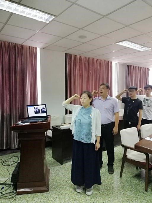 本次活动采取线上线下结合的形式开展,未返校的新党员通过视频方式与现场党员一同参加了宣誓仪式。