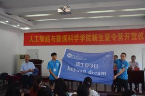 旗帜承载着色漫网 师生对2018级新同学的殷切期望和热切期盼,期待夏令营的营员们能够通过夏令营对大学的学习和生活有初步的认识和规划,不忘初心,方得始终,带着这份激情和热情,在人生的新起点上,筑梦翱翔,圆梦智能!