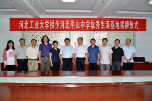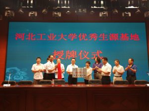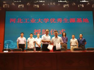 6月20日下午,我院优秀生源基地建设挂牌队伍赶赴第二站藁城一中,藁城一中校长刘虎成、副校长陈建立、副书记宋建辉参加了仪式。商书记首先对藁城一中长期以来为河北工业大学输送大批优秀学子表达了感谢,表示河北工业大学将利用自己综合性大学的资源优势,为藁城一中在教育、教学、管理等方面提供咨询,并大力支持藁城一中做好优秀学生的培养工作。刘虎成校长对河北工业大学选择藁城一中作为优质生源基地表示衷心的感谢,藁城一中将以此为契机,进一步提高办学质量,与河北工大展开更深入更广阔的合作,实现教育资源共享,促进双方互惠共赢,共同发展。刘虎成校长表示学校将加大对河北工大的宣传力度,积极引导毕业生报考,为河北工业大学输送更多的优质生源。商书记和刘校长分别代表河北工业大学和藁城一中双方签署协议书,并举行了授牌仪式。我院党支部书记田红丽老师代表实验室党支部与藁城一中对接,并决定派支部党员代表参加23日为河北工业大学专门组织的招生宣传活动。
