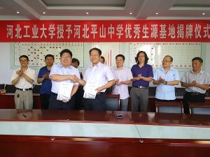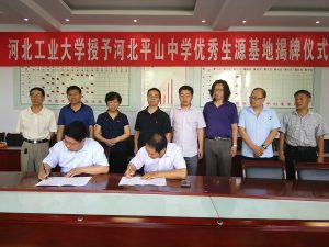 6月22日上午,我院优秀生源基地建设挂牌队伍赶赴此次对接最后一站平山中学,平山中学校长郭建国就此次对接进行了接洽。商书记代表河北工业大学表达了对平山中学不断输送、培养优秀学子的感谢,并表示平山中学位于西柏坡革命圣地平山县,培养出了大批优秀学子,希望更多的平山中学学生报考河北工大。郭建国校长对河北工业大学选择平山中学作为优质生源基地表示衷心的感谢,平山希望以此为契机,与河工大进一步加强联系,输送更多的优秀生源,并对两校未来的合作充满信心和期望。商书记和郭校长分别代表河北工业大学和平山中学双方签署协议书,并举行了授牌仪式。我院党支部书记陈海永老师代表智能系党支部与平山中学对接,并决定多留一天参加23日到平山中学高三毕业仪式,为同学们报考提供更大的支持。