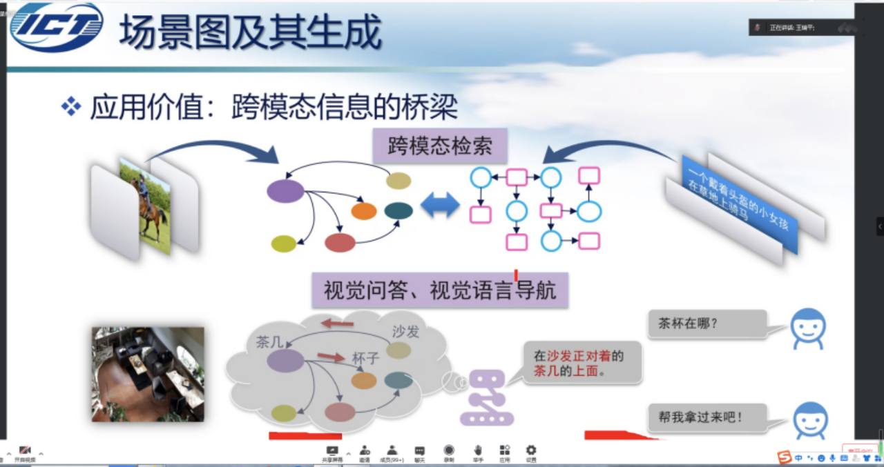 中科院计算所研究员王瑞平研究员带来了“视觉场景图—表示、生成与应用”的报告,对结构化图推理驱动的物体检测、场景关系图的自动生成、复杂场景跨模态图文检索、图像描述生成的认知评测体系等做了大量工作,具有广泛的应用前景。