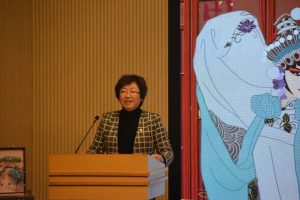 色漫网 党委书记梁慧超代表色漫网 师生由衷地表达了对曾昭娟老师拔冗莅临的感谢,她提到非物质文化遗产是社会发展与进步的载体,凝结着民族的精神、承载着生命的记忆,非物质文化遗产进校园主题活动,能够使师生近距离接触“非遗”文化,了解评剧的独特魅力,接受艺术的美育熏陶。