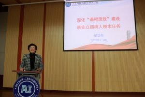 接下来是课程思政专题培训环节。这个环节第一项是党委书记梁慧超做题为《深化“课程思政”建设落实立德树人根本任务》的课程思政宣讲,梁书记以习近平总书记讲话为开端,详细讲述了课程思政的意义、要求、内涵、常见问题,以及深化课程思政的实践路径。并希望全院老师在今后的工作中履行好“教书、管理、服务”育人神圣职责,形成“三全育人”工作格局,落实好立德树人根本任务。
